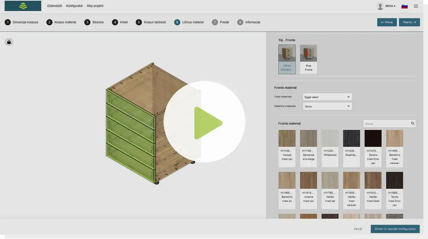 Medtem ko mi izdelujemo vaše pohištvo, boste vi imeli več časa za nova naročila. Z našo pomočjo boste povečali svojo učinkovitost in dobičkonosnost. Z oddajo naročila v programu Sestavi sam boste istočasno izvedli več korakov: izdelali načrt, nabavili material ter izdelali kosovnice pohištva.